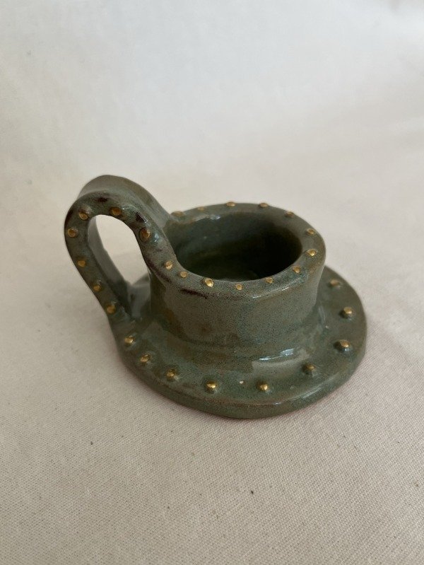 Candelabros modelados y esmaltados a mano con verde jaspeado.