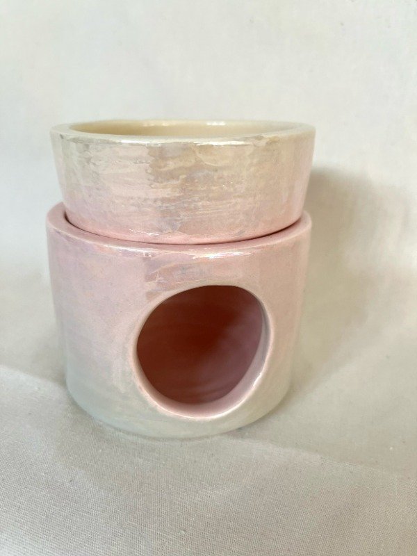 Está esmaltado a mano con degradé de color manteca, rosa pastel y verde pastel.