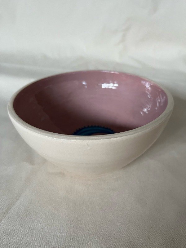 Cuenco hecho en torno alfarero, pintado y esmaltado a mano.