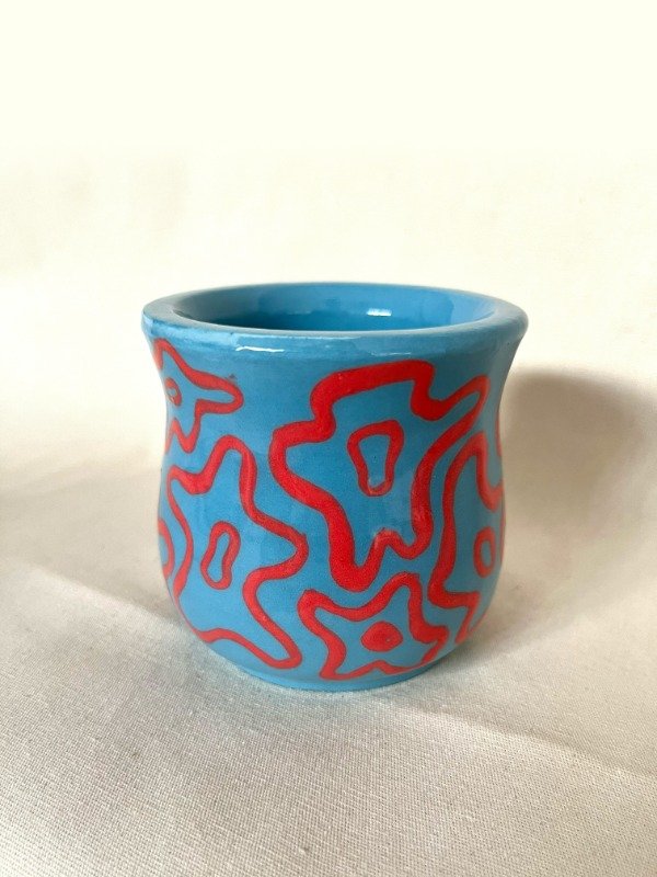 Mate hecho en torno alfarero, pintado y esmaltado a mano.